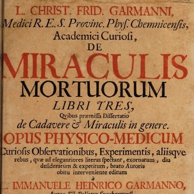 En 1670, el médico y filósofo Christian Friedrich Garmann publicó una obra que, en apariencia, podría parecer una disertación técnica sobre los milagros post mortem