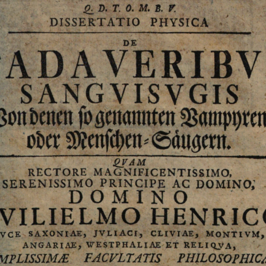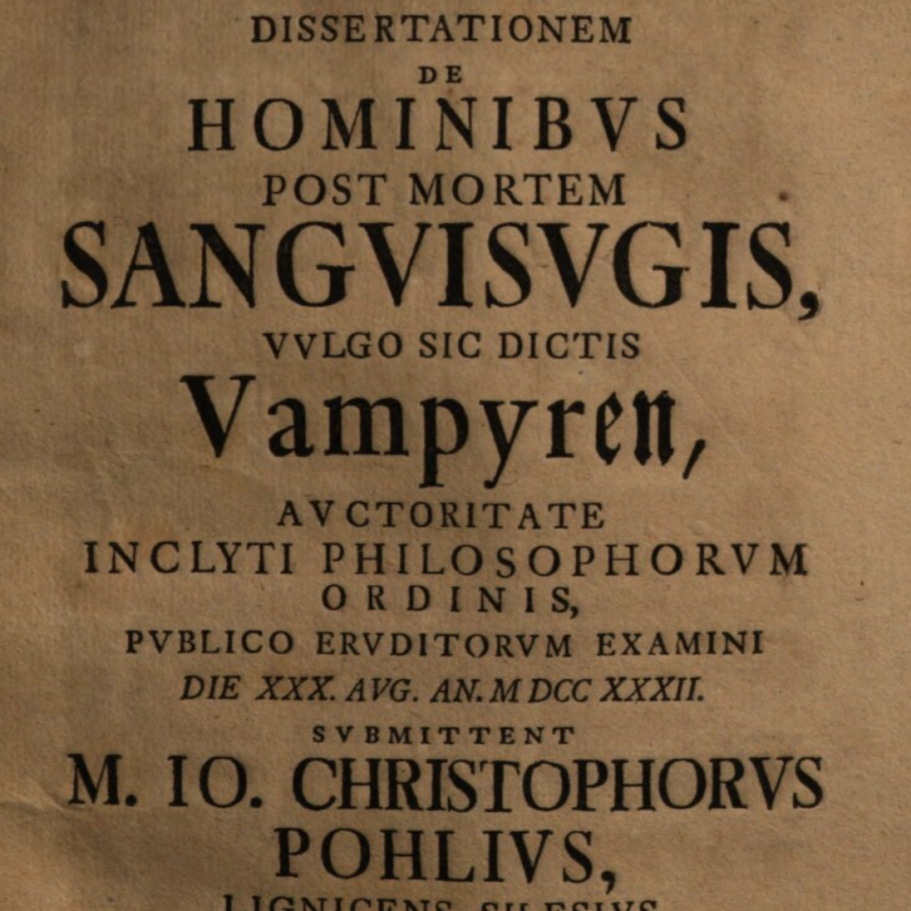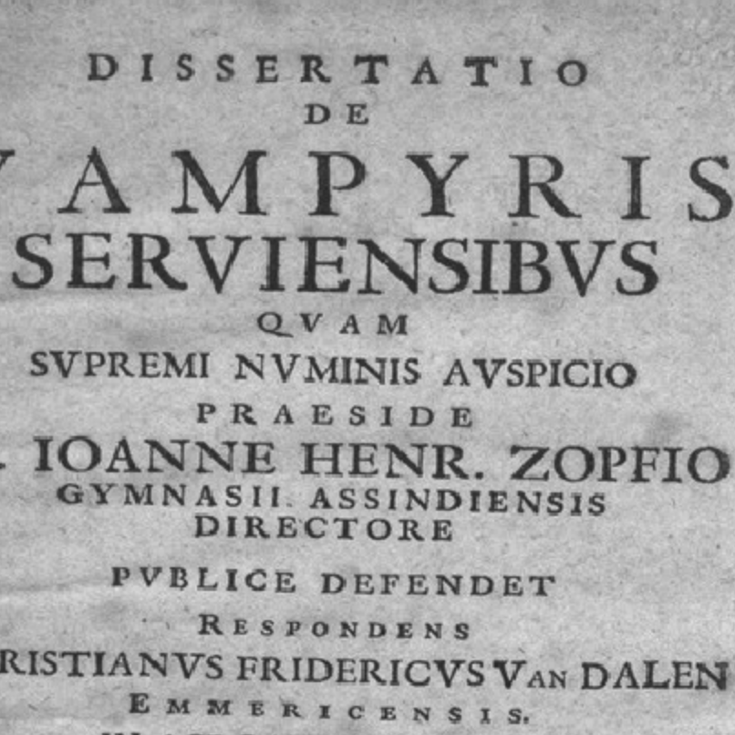 La Dissertatio de Vampyris Serviensibus, publicada en 1733 por Zopf y Van Dalen, no es un texto sobre lo sobrenatural, ni sobre la ciencia, ni sobre la muerte.