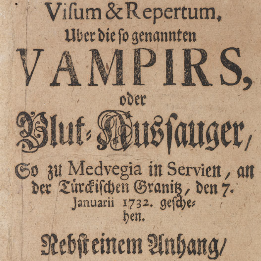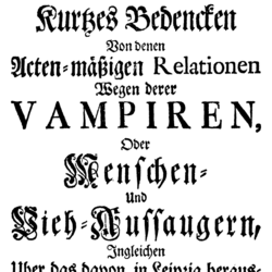 Kurtzes Bedencken von denen Vampiren, ese breve tratado alemán publicado también en 1732, y cuyo título —una "breve reflexión sobre los vampiros"— ya da la pista de lo que pretende.