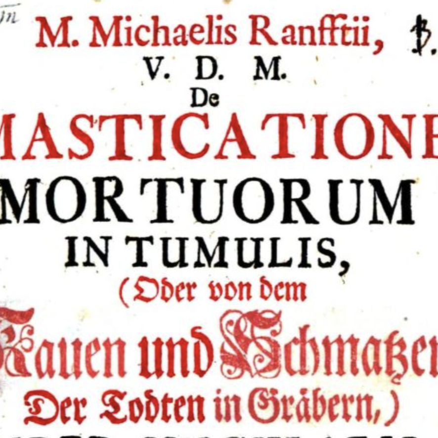 En 1728, Michael Ranft, teólogo, médico y filósofo alemán, publicó De masticationes mortuorum in tumulis, un tratado que se inscribe en la tradición de la medicina que no solo estudia lo físico, sino también lo metafísico.