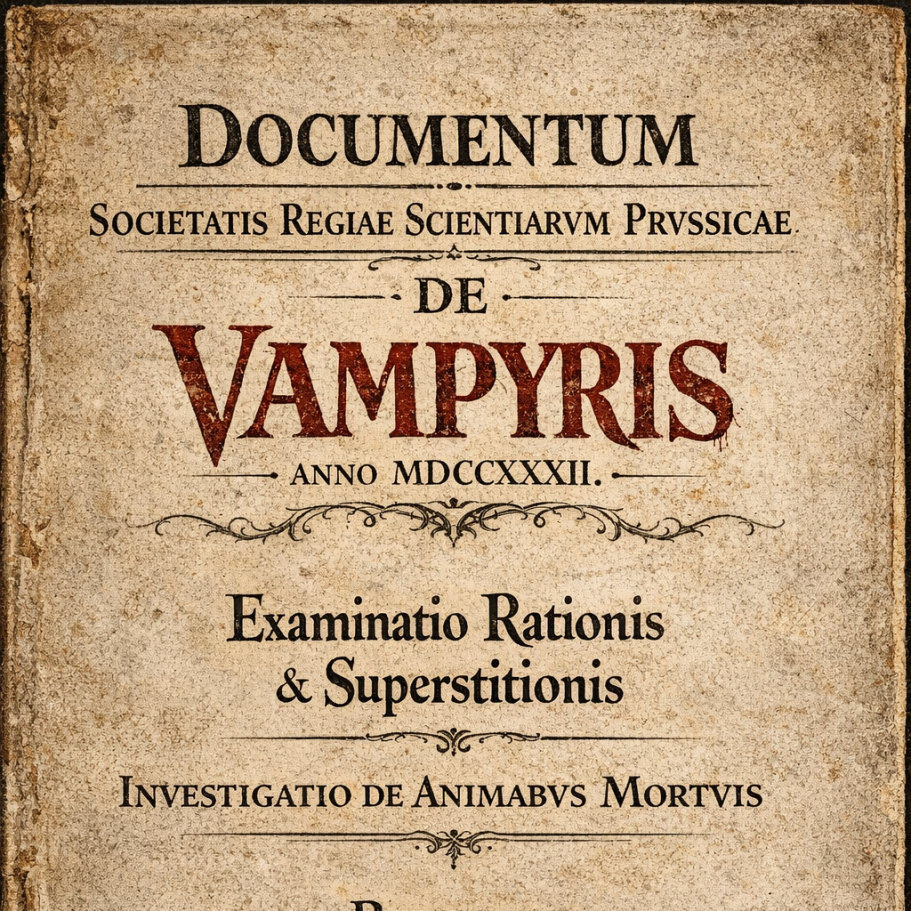 En 1732, la Real Sociedad Prusiana de Ciencias se vio obligada a intervenir públicamente ante el creciente fenómeno de los vampiros, cuyos informes llenaban las páginas de periódicos y crónicas europeas.